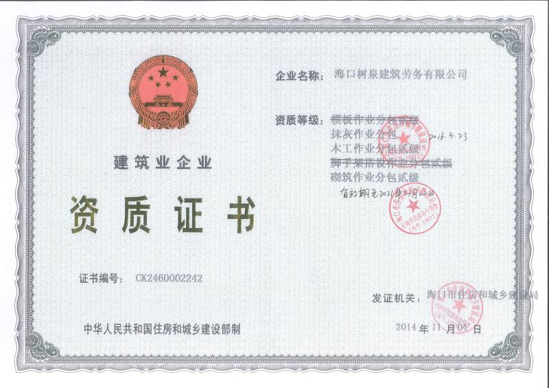海口樹泉建筑勞務(wù)有限公司成立于2011年,公司位于???,其前身是一家專業(yè)建筑施工隊(duì),自2004年即開始在海南從事建筑勞務(wù)施工。自成立至今,公司已經(jīng)擁有一支科學(xué)管理、質(zhì)量過硬、能打硬仗,搶工期的專業(yè)隊(duì)伍。能獨(dú)立承擔(dān)大中型工業(yè)與民用建筑 、室內(nèi)外裝修、各類機(jī)電設(shè)備安裝工程。代表工程有??跒I海華庭、三亞時(shí)代海岸T01/02/04/05棟高層、合肥東?;▓@二期、陵水富力灣B區(qū)高層、三亞金中海(酒店)、瓊海大印經(jīng)典花園、海口環(huán)球海景大酒店(四星級(jí)酒店,在建中)、陵水珍珠大廈(五星酒店)、??谌f達(dá)廣場、美蘭機(jī)場二期。